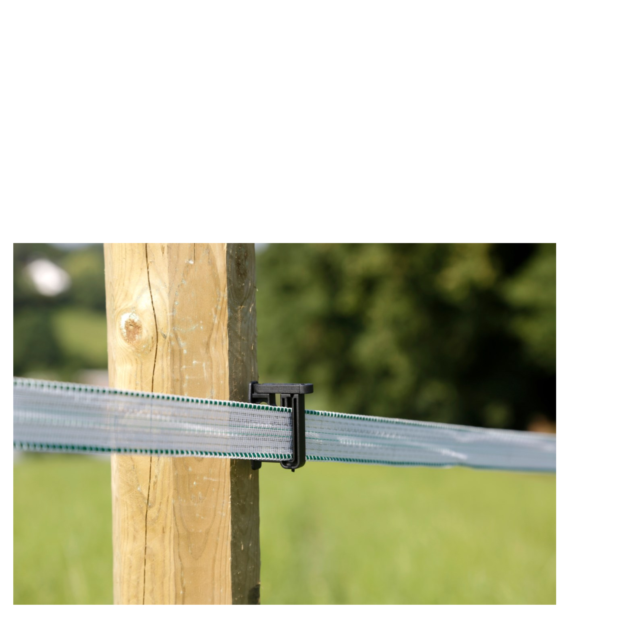El Aislador Maxi Tape de Weme es la solución ideal para instalar cercas eléctricas en ganado, caballos y otros animales de granja. Diseñado para ofrecer máxima seguridad y durabilidad, permite sujetar de forma firme cintas de hasta 40 mm de ancho y cuerdas de hasta 6 mm de diámetro sobre postes de madera. Su mecanismo de clip mejorado con doble punto de bloqueo garantiza una sujeción estable, evitando que la cinta o el cordón se suelten incluso en condiciones adversas. Además, cuenta con soporte galvanizado de alta resistencia, lo que asegura larga vida útil y resistencia a la intemperie. Perfecto para profesionales de la ganadería que buscan eficiencia y seguridad en la instalación de cercas eléctricas. Se presenta en paquetes de 25 y 80 unidades, facilitando su distribución y reposición en el campo.