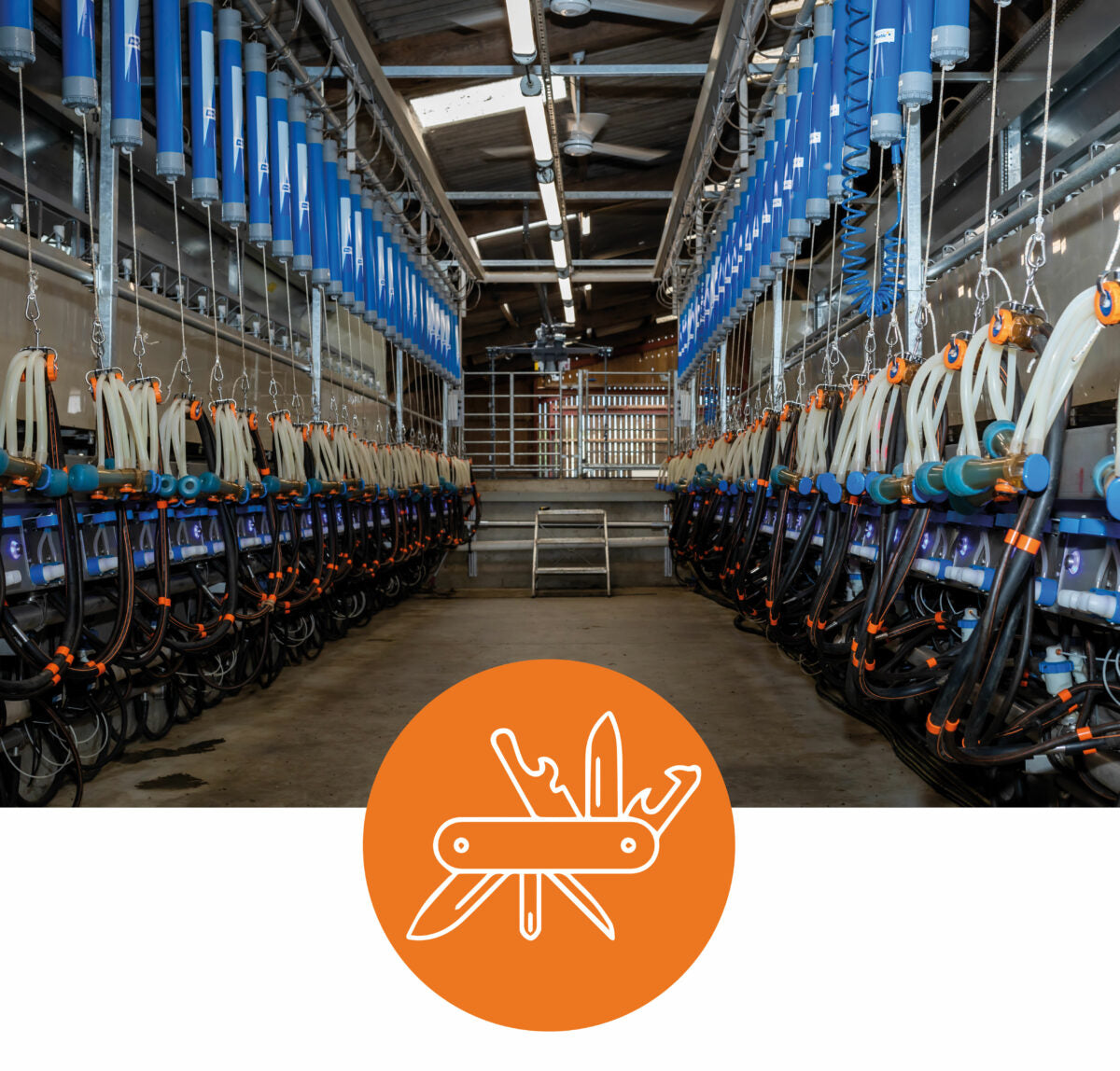 Versatilidad: Se adapta perfectamente a todo tipo de puestos y ofrece el mismo rendimiento de ordeño independientemente de la configuración de la sala de ordeño.