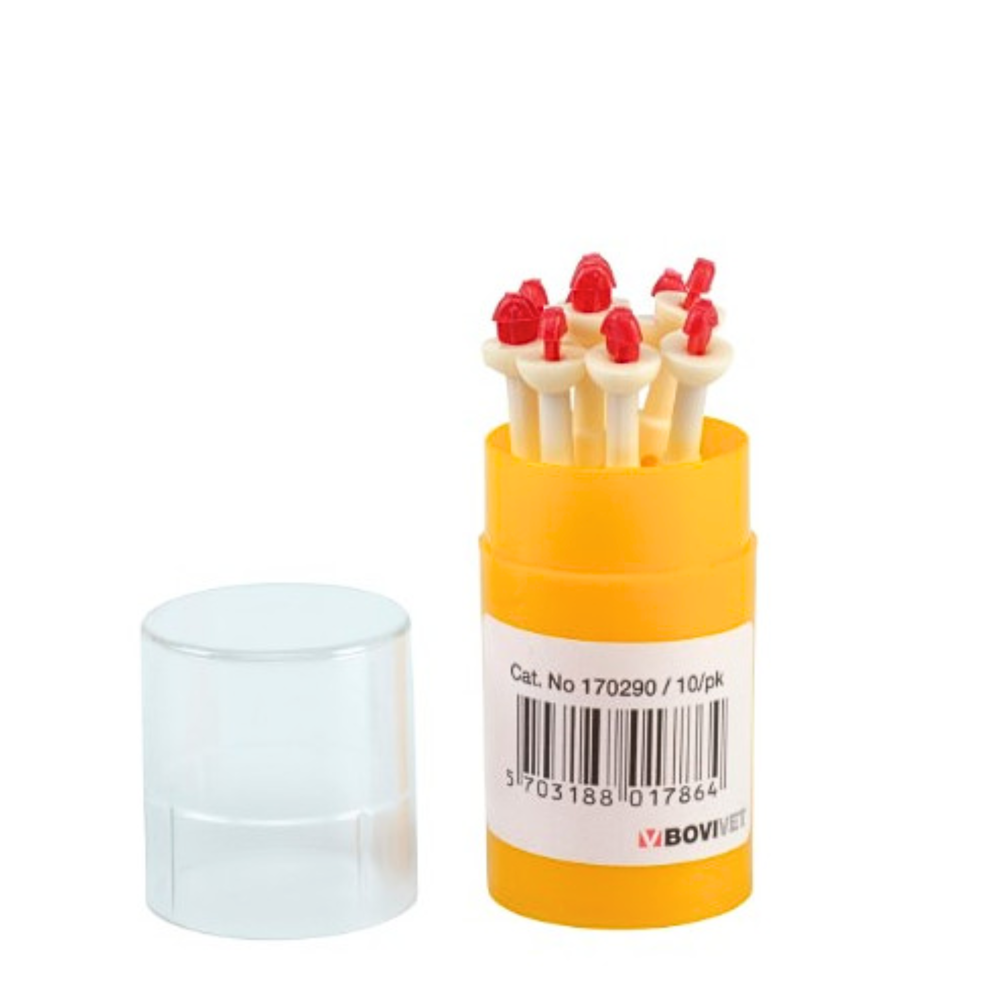 Las cánulas mamarias dilatadoras extra largas tienen un largo de 7 cm y un diámetro de 5 mm, fabricadas con material muy flexible que facilita su uso sin causar molestias al animal. Cada paquete contiene 10 unidades de un solo uso, garantizando higiene y seguridad en cada aplicación. Su diseño extra largo permite un acceso más cómodo y preciso, ideal para la manipulación y cuidado mamario en vacas y otros animales de granja.