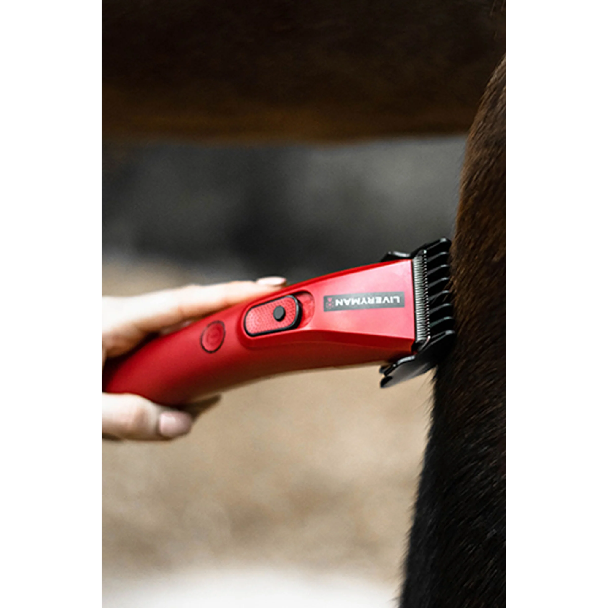 Esquiladora recortadora Liveryman Nova, herramienta profesional de cuidado del pelaje diseñada para ganadería y preparación de animales para concursos. Cuenta con batería interna de iones de litio, autonomía de hasta 6 horas, carga rápida de 3 horas, longitud aproximada de 17 cm, diámetro de agarre de 12 cm y peso ultraligero de 218 g, lo que garantiza manejo cómodo y precisión en cada pasada. Su diseño ergonómico y equilibrado facilita el control incluso en sesiones prolongadas, mientras que su funcionamiento silencioso y con baja vibración reduce el estrés en animales sensibles. La altura de corte es ajustable de 0,8 mm a 2 mm, con peines adicionales para longitudes de 3, 6, 9 y 12 mm, ofreciendo versatilidad para trabajos detallados, líneas limpias y preparación para exposiciones. Disponible en color rojo, esta recortadora para ganadería combina rendimiento y durabilidad para profesionales y aficionados.