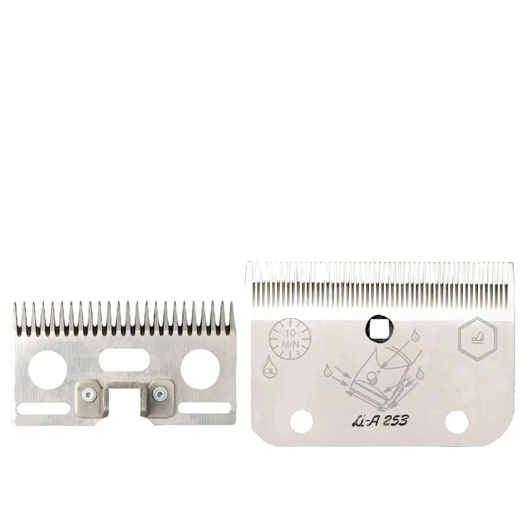 Juego de peine y cuchilla Modelo A-253 veterinaria (LC A 253 – 0,5 mm): conjunto formado por peine de 53 dientes y cuchilla de 24 dientes, diseñado para una altura de corte ultra fina de 0,5 mm, ideal para trabajos de máxima precisión. Compatible con máquinas Super 3000 y Combi Liscop, este set está fabricado con materiales de alta calidad y gran precisión, pensado para uso intensivo en entornos veterinarios y profesionales. Su diseño permite un corte extremadamente apurado, dejando la piel prácticamente limpia, lo que lo convierte en una herramienta esencial para intervenciones clínicas y preparación detallada de animales.
