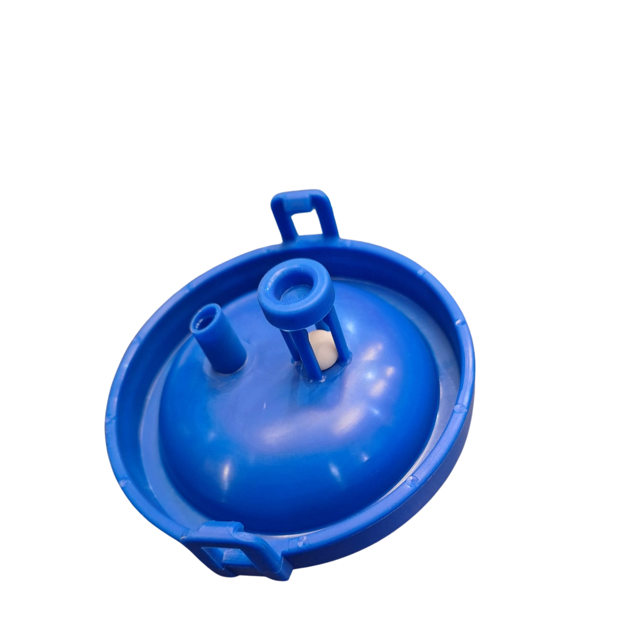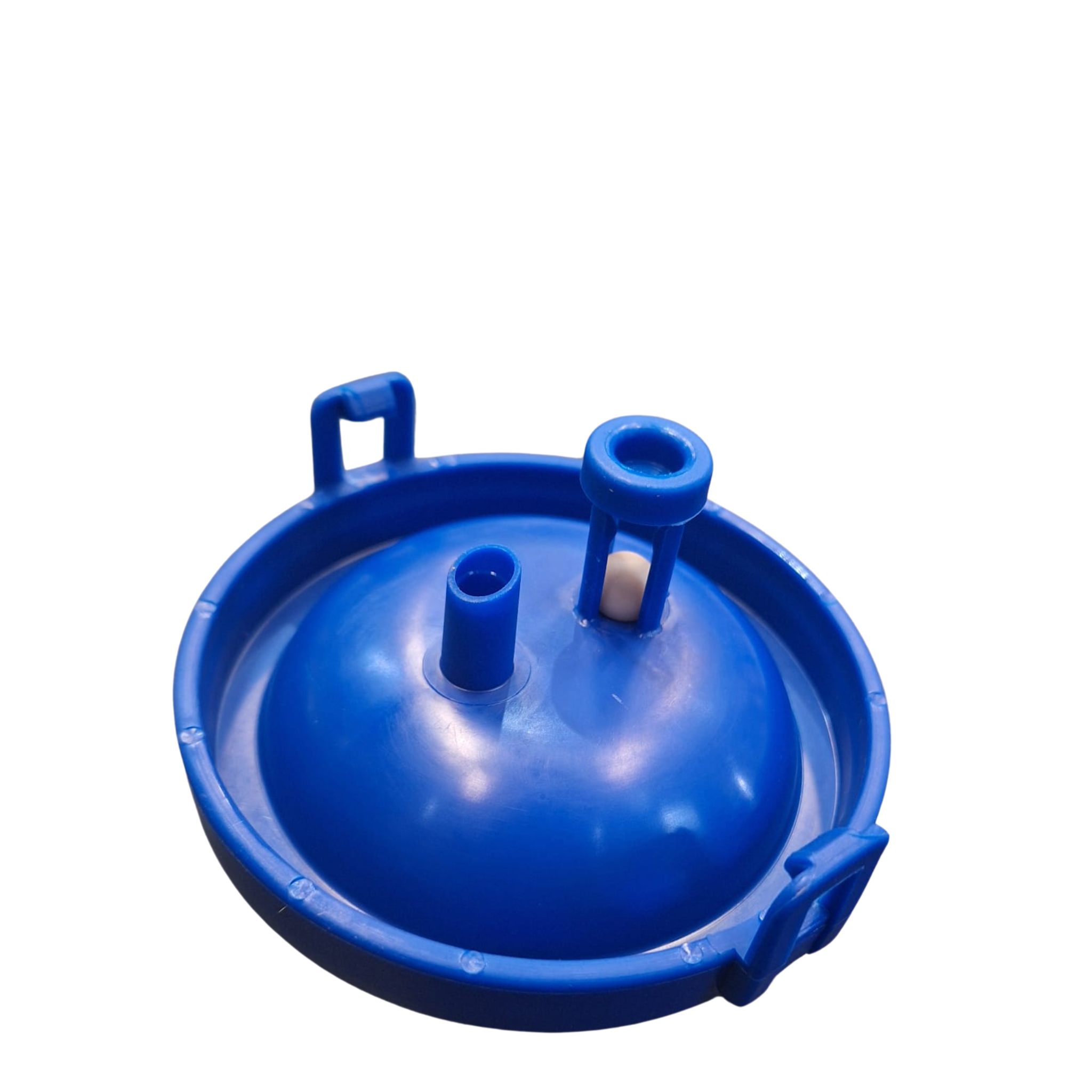 La tapa para separadores de leche está fabricada en plástico resistente de alta durabilidad, diseñada con dos conexiones para mangueras de ordeño, cierre seguro y hermético, asa integrada para fácil manipulación, materiales aptos para uso alimentario, superficie lisa y fácil de limpiar, color azul para rápida identificación en la sala de ordeño y estructura robusta pensada para uso intensivo diario en explotaciones ganaderas.