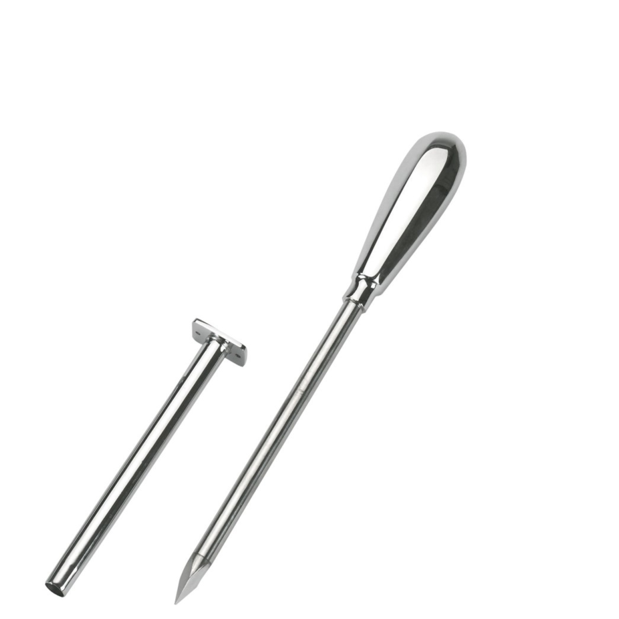 Instrumento veterinario esencial para el manejo del timpanismo agudo en ganado bovino. Este trocar metálico de alta calidad está diseñado para una descompresión rápida y segura del rumen, facilitando la eliminación de gases acumulados. El set incluye una espina (trocar u obturador afilado) de 12 cm de largo y 7 mm de diámetro, junto con dos cánulas huecas que permiten mantener la salida de gases tras la punción.